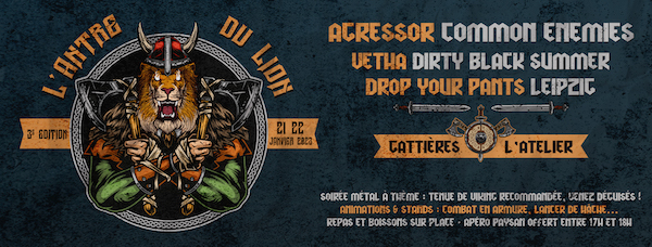à l’affiche du 21, les groupes: Aggressor, Common Enemies, Vetha, Dirty Black Summer, Drop Your Pants et Leipzig. Le