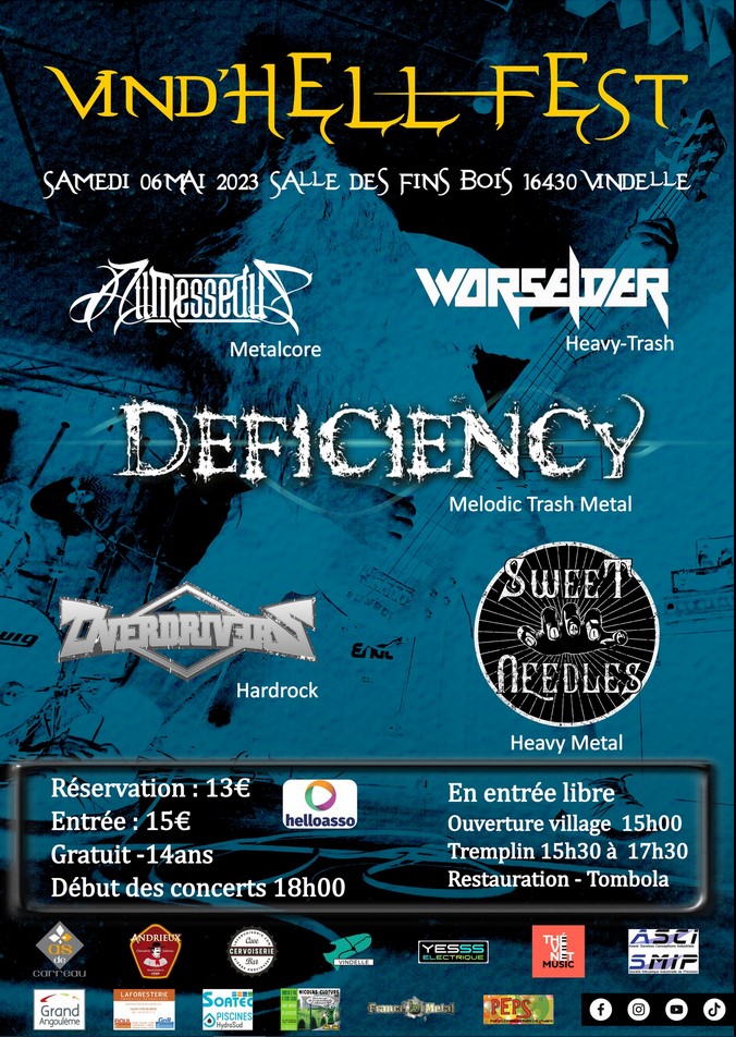 Pouvez-vous présenter la genèse de ce projet et l'équipe qui compose l'association ?Nous avons monté le Vind'Hell Fest pour répondre à une demande très forte du public et des groupes dans un département où l'offre en la matière mérite de s'étoffer très largement. A part le Vars Attack en septembre, il n'y a pas d'autres fest dédiés au Hard-Rock et au Metal, en Charente. Le public, et nous en faisons partie, doit faire 100 bornes pour pouvoir partager une musique qui nous rassemble. Composition du bureau : Patrick : Secrétaire et Chargé de la gestion des groupes. Mika : Trésorier Adjoint et Chargé de la restauration et de la brigade en folie. Patrice : Trésorier et Chargé du Village et du Tremplin. Laurent : juste bon à serrer les paluches et siroter les bières après avoir vérifié l'installation du gros son et de la boule à facettes. Avant de se projeter, quel bilan tirez-vous de la première édition de 2022 ? (Public, ambiance, groupe, comptable...).Pour une première, nous pouvons être plus qu'heureux d'avoir transformé cet essai pour reprendre un terme du ballon ovale. 300 personnes sur site dont 250 billets réservés, un public très heureux d'être là à mettre une ambiance de feu, très bien emmené par nos quatre groupes Breakdust, Overcharger, The SoundRoots et Trooper666, tout aussi heureux d'avoir lancé cette première et dans une atmosphère surchauffée. La réussite tient aussi pour une bonne partie à toute l'équipe de bénévoles de l'asso PEPS, amis et relations qui ont assuré de bout en bout la logistique dont la bière jusqu'à la dernière goutte. Nous sommes ressortis épuisés mais avec une réelle satisfaction. Est-ce qu'il y a des choses que vous feriez différemment ?Assurément. Le retour d'expérience de cette première édition doit nous permettre de nous améliorer et de nous structurer toujours mieux pour aborder les autres éditions avec plus d’organisation. Chaque membre du bureau a un rôle bien défini tout en privilégiant l'interaction. Nous travaillons en synergie. Comment avez-vous monté cette affiche ?Le succès de l'an dernier a favorisé le contact avec les groupes de tout l'hexagone. Après plusieurs réunions et discussions entre nous, avec l'aide précieuse de Jean Mich'Hell d'APDM, nous avons réussi l'exercice très difficile de choisir parmi la quarantaine de candidatures qui nous étaient adressées. L'idée directrice étant de toujours proposer une programmation la plus large pour répondre à tous les styles. (NDLR : Une aide si précieuse qu’aucun des groupes sur lesquels nous avons échangé n’est sur l’affiche de cette année ! ;-) ) Qu'est-ce qui vous a décidé à faire évoluer la formule avec un tremplin et l'agrandissement du village des exposants ?Dès la première édition, nous avions l'idée de les mettre en place pour créer des animations durant toute l'après-midi avant d'attaquer les concerts du soir. Nous avions décidé de les mettre en stand-by pour cette année-là et selon le succès, les lancer en 2023. C'est chose faite ! De plus, nous avons étoffé notre affiche avec cinq groupes en programmation. Cette année, on peut observer une démultiplication de festivals locaux, et pas mal d'entre eux sont dans l'obligation d'annuler ou de changer leur plan. N'avez-vous pas peur d'un phénomène de saturation dans le contexte économique actuel ?Nous avons volontairement fixé notre fest en mai pour être assez distant de la période faste des festivals et avec un positionnement de prix destiné à le rendre accessible au plus grand nombre sans se ruiner. Pour nous permettre d'y parvenir, nous comptons sur nos partenaires tant publics que privés qui se sont lancés avec nous cette année, en plus de ceux de la première édition et que nous remercions vivement pour leur confiance renouvelée. Nous tenons à bien parler de partenaires pour qu'ils s'inscrivent avec nous dans la durée. Vous avez effectué des préventes qui vous permettent d'avoir déjà une idée de la fréquentation ?Comme en 2022, nous avons lancé les préventes via le site HelloAsso qui est une formule qui fonctionne très bien. Nous espérons faire mieux que lors de la première édition et misons sur une météo un peu moins chaude que l'an passé !! L'objectif pour l'année prochaine est toujours un open air ?Lors de la création du Vind'Hell Fest, il a été clairement exprimé que l'objectif est de monter un Open Air. Pour y parvenir, nous devons nous structurer tant sur le plan humain (bénévoles, amis, familles, relations et toutes les bonnes volontés); financier (subventions et partenariat) que technique ou logistique pour gérer une telle organisation, A l'heure où on se parle, nous ne sommes pas encore en mesure de fixer l'année du lancement. Nous aurons l'occasion d'y revenir le moment venu. Qu'est-ce que l'on peut vous souhaiter ?Autant de réussite pour ne pas avouer plus que l'an passé, de pouvoir compter sur un public encore plus nombreux et fidèle et des bénévoles toujours autant investis. Et que le cours de l'électricité arrête de grimper pour éviter de finir en acoustique !!! Un mot pour conclure cette interview ?Où ai-je mis mon T-shirt noir et ma bière ?(NDLR : Pour ceux qui trouve cette phrase bien étrange, c'est un clin d’œil à l'édito qui présentait le festival l'année dernière) Je vais également en profiter pour vous dire que cette équipe transpire la passion pour le Metal et que la bonne humeur que vous pouvez entrapercevoir dans ces lignes est à l’image du festival qu’ils ont réussi à monter : Des grosses décibels pour un grand plaisir !