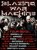 Interview Fab, Franky, IzakarBonjour, merci d'accepter cette interview pour auxportesdumetal.comFab : Merci à toi, c'est toujours un plaisir de répondre aux questions des webzines ! Pour commencer, peux-tu nous faire un petit historique de Blazing War Machine ?Fab : Le projet Blazing War Machine remonte à 2005. Phil et Franky sont à l'origine du projet, pas mal de musiciens se sont par la suite greffés mais nous avons eu un line up stable jusqu'au départ de Typhus en milieu d’année 2012 et l'arrivée d’une nouvelle chanteuse en la personne d’Irina il y a quelques mois. Comment fonctionnez-vous pour composer ? En fait, qui fait quoi ?Fab : Tout le monde amène ses idées au sein du groupe, mais en général les idées mélodiques viennent du synthé. A partir de là, Franky ajoute le côté rythmique et martial au niveau des guitares et de la basse. Nous complétons le tout pour faire sonner l'ensemble plus lourd et agressif. Cela dit, il est déjà arrivé qu'une idée de morceau parte d’une saccade de batterie ; il m’est arrivé également d'apporter des morceaux quasiment complets que chacun agrémente grâce à la maitrise de son instrument. Nous avons donc plusieurs façons de procéder ce qui apporte une certaine variété à notre album. Depuis le départ de Typhus, le chanteur qui est sur votre album, c'était Izakar qui assurait le chant mais depuis peu, vous avez engagé un nouveau vocaliste, pourquoi ce choix ? Et pourquoi une chanteuse ?Fab : Izakar a en effet assuré le chant suite au départ de Typhus, nous avions besoin de nous retrouver tous les cinq et continuer d’avancer avant d'intégrer une nouvelle tête au chant. Cela s'est dont fait assez naturellement, nous recherchions quelqu'un avec une voix agressive, un look agressif, et une culture black/death. Il y a beaucoup de bons chanteurs sur Marseille mais assez peu finalement dans le style typé black que nous recherchons. Comment avez-vous trouvé cette perle, qui est-elle et d'où vient-elle ?Fab : Irina est une chanteuse russe qui est venue vivre sur Marseille depuis quelques mois. Il se trouve qu'elle cherchait également un groupe et avait entendu parler du fait que nous n'avions plus de chanteur, nous l’avons rencontrée, fait quelques essais et avons décidé de tenter l’aventure ensemble. Comment se passe son intégration dans le groupe ?Fab : Etant donné qu'elle ne parle que très peu français nous nous sommes tous mis ou remis à l’anglais. Irina est très motivée et nous apprenons à travailler ensemble. Un nouvel album de Blazing War Machine est-il prévu avec Irina ?Fab : Nous ne sommes pas un groupe qui sort un album par an, nous avons un processus d'écriture assez long car au final, même si notre musique n'est pas en soit très complexe, nous voulons que chaque morceau fasse l'unanimité au sein du groupe, cela nous ralentit un peu mais lorsqu'un morceau est fini nous en sommes tous satisfaits à 100 %. L'album n’est pas encore assez avancé pour t'en dire plus. Cela dit, j’ai mon propre studio d’enregistrement où je réalise des productions de groupes locaux et dans lequel j'ai mixé/masterisé le titre "Swamp Stagnant Memories" avec la voix d’Irina. Le titre est d'ailleurs disponible sur youtube pour les curieux ! https://www.youtube.com/watch?v=rslzeqnxOxI&list=UUYYYasqGDCeIKeBC-HK3YGw&index=1. Etiez-vous conscients du potentiel scénique d'Irina en l'engageant, ou vous a-t-elle étonnés ?Fab : nous avions notre petite idée en l’engageant oui ! Dans Blazing War Machine, il nous faut quelqu'un au chant avec une présence scénique forte, cela fait aussi partie de la marque de fabrique du groupe, tout autant que le jeu de lumière, les lasers et l’écran que l’on utilise sur scène. Typhus avait trouvé un personnage, Irina est en train d’en créer un autre différent mais tout aussi agressif, je pense que les quelques concerts que nous avons jusqu’à mi 2013 vont permettre à Irina de prendre encore plus possession de son pouvoir scénique. Avec Blazing War Machine, vous tournez beaucoup en région PACA comptez-vous étendre votre périmètre ?Fab : Bonne question ! C’est vrai que nous avons beaucoup tourné en PACA, cela dit nous sommes montés jouer jusqu’au Hellfest il y a quelques années, et nous commençons à pas mal sortir du Sud de la France depuis que nous avons notre propre camion de tournée. Nous avons fait quelques dates sur Lyon, Saintes, Montbélliard, Chambery et en Suisse fin 2012. L’accueil était exceptionnel sur ces dates et le public vraiment réceptif. Nous continuons d’ailleurs nos excursions en jouant sur Paris lors du Warm up Fest le 9 mars ; dans le Sud de la France à Manosque et aux Pennes Mirabeau les 12 et 13 avril, à Amiens le 4 mai et en Suisse les 10 et 11 mai et d’autres dates vont sûrement s’ajouter sur notre page facebook. Le 16 février à Grasse, c'était la première fois que je voyais Blazing War Machine sur scène et j'ai pris une grosse claque. Vous, comment avez-vous ressenti ce concert ?Fab : Eh bien j’ai vraiment ressenti une bonne ambiance à ce concert. Au premier rang, quelques uns connaissaient les paroles des chansons, circle pits et walls of death ont bien fonctionné aussi ! C’est le genre de concert que nous adorons, une belle salle, bien équipée, avec un public prêt à tout donner et avec qui un échange se crée. C’est lors des live que tu te dis que ca valait le coup de passer des heures enfermés dans un studio à répéter pour donner le maximum aux gens qui se sont déplacés pour venir te voir. Il y a aussi eu un vrai changement depuis la sortie de notre album qui a été beaucoup téléchargé via notre page bigcartel, en fait nous n’avons quasiment pas joué l’année de la sortie de notre album, et quand nous avons repris les concerts j’avais une petite appréhension – est-ce que les gens nous ont oubliés ? - mais au final cette année écoulée a servi à fa