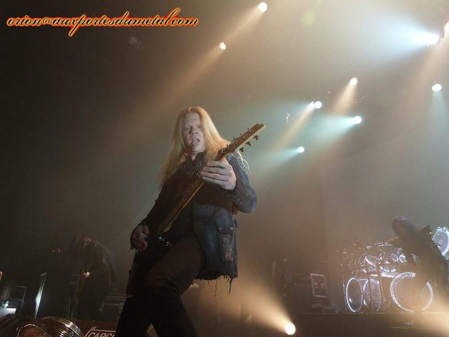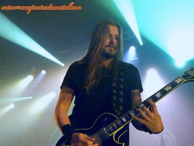 Le groupe dispose en plus de deux guitaristes excellents, qui se complètent parfaitement et qui nous livrent une prestation énorme. Sur la droite de la scène, l’américain Jeff Loomis, ex-leader de Nevermore, a parfaitement trouvé sa place dans ce groupe. Michael Amott, à notre gauche, tout comme son collègue, n'est pas du genre à sauter dans tous les sens et à arpenter la scène en long et en large mais niveau technique, c'est hyper solide.