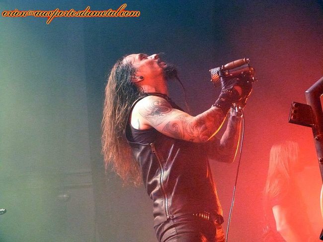 Elle a, en outre, un petit plus à nous offrir. Le fait qu'elle s'exprime en français est très appréciable. Enfin, il serait plus juste de dire "en québécois" car elle a des tournures de phrases qui sonnent un peu exotiques : "présentement", "sauter dans les airs"... Mais c'est ce qui fait le charme de la belle Canadienne. Elle est là pour mettre l'ambiance (les autres musiciens étant principalement concentrés sur leurs instruments), et elle le fait bien. Sauts dans tous les sens, headbanging furieux, elle nous fait taper dans les mains, elle nous fait chanter ou faire des oh oh oh sur les harmonies des guitares, elle agite les drapeaux... La tornade bleue ne nous a pas donné une minute de répit.