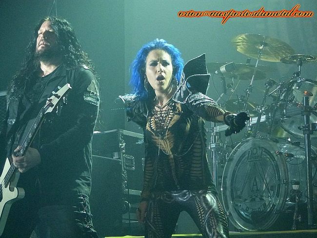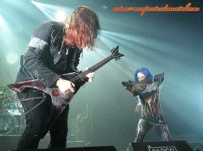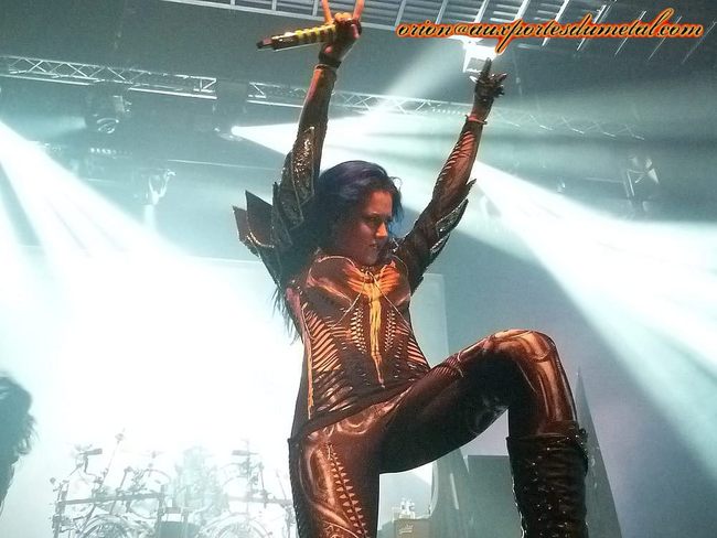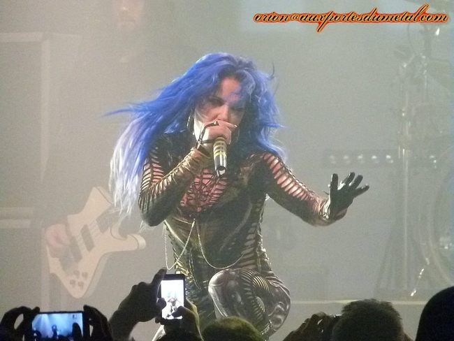 Après une petite vingtaine de minutes de battement, les lumières s’éteignent de nouveau et Khaos Overture retentit dans les enceintes. L’excitation monte d’un cran dans le public à chaque fois qu’un membre du groupe apparaît. Et c’est parti pour une heure et demie bien intense ! Alissa déboule telle une tornade (bleue) dans une tenue assez surprenante, très futuriste. La lumière est un peu meilleure que pour Amorphis, tant mieux pour les photos. Par contre, ici, je rencontre un autre problème : il est très difficile de capturer une image correcte de la tigresse tant elle bouge dans tous les sens. Cette petite Canadienne déborde d'énergie. Si vocalement, le choix était le bon pour remplacer Angela, il est clair que scéniquement, elle n'a rien à lui envier non plus.