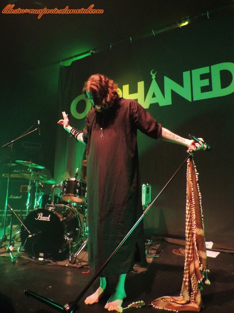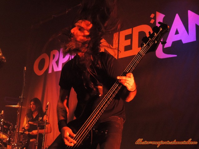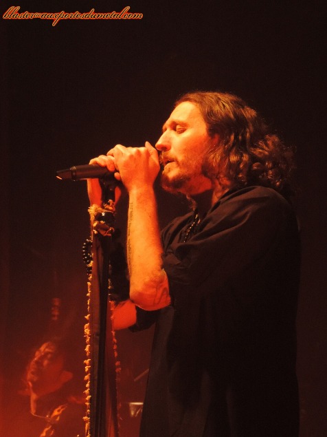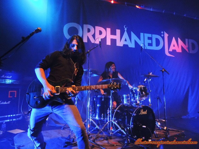 Vers 19h15, les Israéliens montent sur scène et entonnent la chanson titre de leur dernier album en date, All Is One. Sur ce premier morceau, le mix me semble assez confus, ce qui est souvent le cas en début de soirée, mais je suis dans la fosse aux photographes et on me confirmera plus tard que dans le centre de la salle, c'était un peu plus harmonieux. La chanson est excellente et constitue une entrée en matière idéale. On regrettera que les aspects symphoniques ou traditionnels de la musique d'Orphaned Land ne soient que moyennement audibles et samplés. Oui, je chipote car on pouvait s'y attendre : les gars n'allaient quand même pas débarquer avec un orchestre et une chorale...