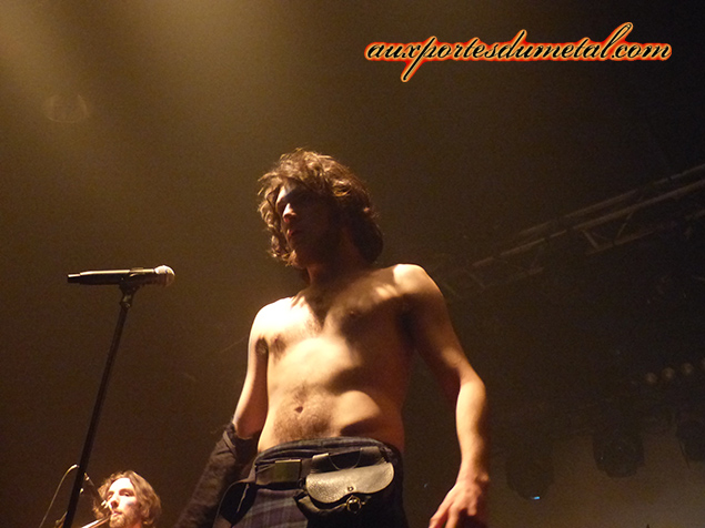 Furor Gallico Aussi vite que possible dès la fin de Drenaï, nous allons rejoindre les Italiens de Furor Gallico. Le set commence sur les chapeaux de roues avec une énergie sidérante. Le frontman, Davide « Pagan » Cicalese, est torse nu et pour ainsi dire mobile. Il voyage de chaque côté de la scène sans s’arrêter et se retrouve assez vite en sueur. Le son est propre, ce coup-ci on entend la satanée flûte ainsi que la harpe. Harpe qui apporte un petit plus dans la plastique de la scène. J’ai toujours trouvé cet instrument joli. Les compositions du groupe manquent un chouïa d’originalité mais le groupe compense ce léger souci par un investissement total de la part de ses membres. On note la présence de fans juste devant la scène, portant tee-shirts et drapeaux à l’effigie de Furor Gallico. Aux alentours de la fin du set, les Italiens utilisent leur arme secrète : La Notte dei Cento Fuochi. Une chanson à la gloire de la bière et des buveurs de bière. Infaillible. Les Italiens ont décidé pour ce concert de répartir plutôt équitablement le set entre leur album éponyme et leur nouvelle sortie : Songs from the Earth.