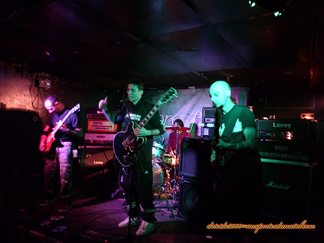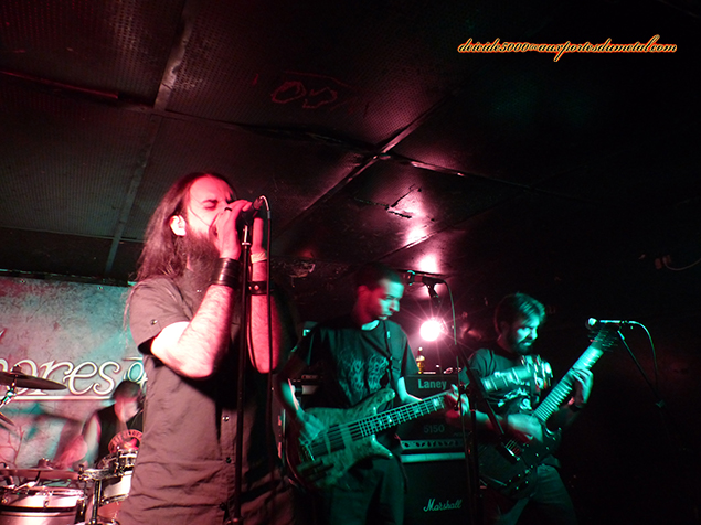 Le feeling est très Katatoniesque, aéré, avec un chant clair. Les guitares sont peu saturées, la basse est audible. Ca m’a bien plu, c’est du doom, c’est lent, ça a des atours de chants de marin par moment… cool. C’est bien en place. A souligner par ailleurs, c’est la première fois que ce batteur joue avec eux. Et pour cause, il ne les connaissait pas la veille. Chapeau bas, l’ami. Même si le set n’est pas très compliqué, il n’en reste pas moins varié. En revanche, ça me fait chier car vingt minutes plus tard, c’est déjà fini. Dommage, j’aurais aimé que ça dure un peu plus.