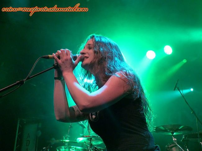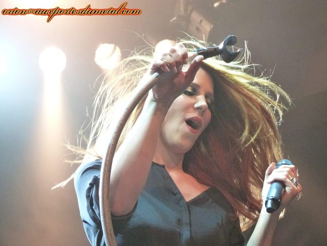Les deux premiers morceaux du dernier album sont joués à la suite, comme la dernière fois que je les ai vus (au Motocultor Festival, l’année dernière). Le groupe n’a-t-il pas changé sa tracklist depuis le début de la tournée de promotion de The Quantum Enigma ? Si, voici un titre de The Phantom Agony, Sensorium, que j’ai plaisir à retrouver. Et puis, pour le quatrième morceau, Simone nous propose de choisir entre The Last Crusade et Storm The Sorrow au volume sonore des cris. Le résultat n'est pas probant, Simone demande à ses collègues s’ils ne doivent pas jouer les deux. C'est finalement à main levé que le public choisit The Last Crusade. Ouf ! Du coup, il n'y a plus aucun titre de l'album Requiem For The Indifferent dans la tracklist. Et c'est une très bonne chose de mon point de vue, peut-être que le groupe s'est enfin rendu compte que c'était son album le plus faible.