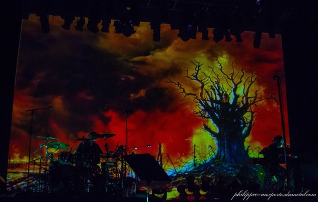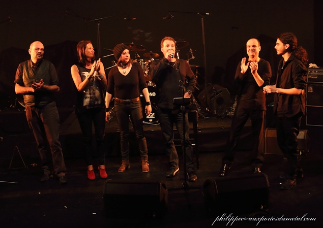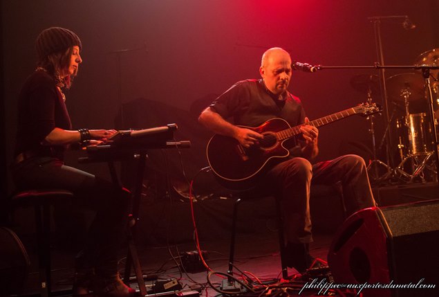 Pour Eric, nous avons affaire à un requin de studio aux multiples projets donc cela peut être normal, mais Alex, lui, est un jeunot d'une vingtaine d'années. Vu son touché et son bagage technique, c'est à se demander s'il n'a pas appris à jouer avec son cordon ombilical dans le ventre maternel ! Outre la guitare, tout comme Valérie, Alex s'en sort très bien vocalement, même si Eric participe aussi, ce sont tous les deux qui chantent en lead sur la majorité des titres. Malgré la sobriété des orchestrations, on peut aussi admirer le jeu de basse de Bernie et la précision de Gilles à la batterie. Quant à Claire toujours très concentrée aux claviers, elle s'est lâchée un peu, nous avons eu droit à quelques sourires (trois). La petite bande clôt sa partie Damnation par Closure puis enchaîne par Harvest (Blackwater Park) reconnu dès ses premiers accords par un public bluffé par le talent de ces six musiciens. C'est un magnifique Face Of Melinda (Still Life), agrémenté d'un superbe solo, qui sera le dernier titre de ce superbe set ! Tout le théatre Lino Ventura, charmé par ce show, est debout pour ovationner les Niçois, auteurs d'un concert sans faille !