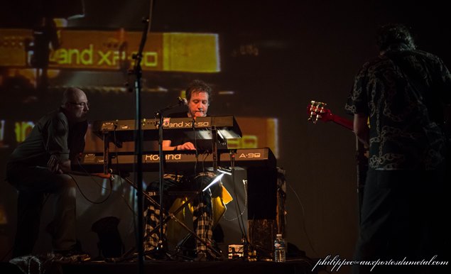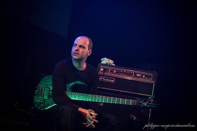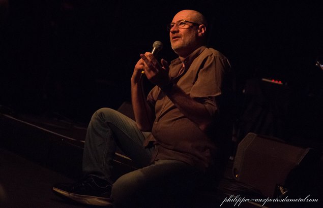Nous avons droit à un entracte qui me permettra de dire bonsoir à quelques collègues et surtout d'embrasser mon beauf préféré, Fred, venu spécialement d'Aix et arrivé juste au début du set de Damnation. Le temps d'une bière et d'un passage aux urinoirs et nous revoilà dans la salle. Fred retourne à sa place et moi avec mon pass photo fièrement accroché à ma poitrine, je me cale devant la scène avec mon appareil prêt à dégainer.