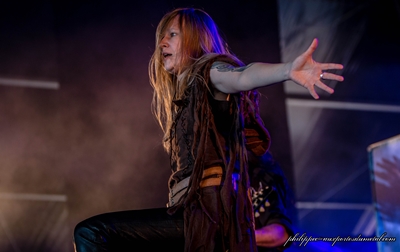 Je suis un fan de Paradise Lost de la première heure et admiratif de Gregor Makintosh, leur légendaire guitariste gaucher. J’ai découvert cependant tardivement ce qu’il faisait avec Vallenfyre en tant que chanteur. Il a bien caché son secret, le bougre. Quelle voix d’outre tombe ! A se demander pourquoi ce n’est pas lui qui chante sur les premiers Paradise Lost car il n’a pas grand-chose à envier à Nick Holmes. J’étais très intrigué par sa performance. Et je le suis encore plusieurs jours après. Le doux et effacé Gregor de Paradise Lost laisse place, plusieurs années de maturation plus tard, à un sauvage revendicatif aux dreadlocks luisantes. Faut aimer…. La musique n’est pas aussi soignée que PL et est bien plus rentre-dedans. Le show est sympa mais je ne sais pas pourquoi, j’ai plus l’impression de voir des musiciens accompagner un chanteur qu’un vrai groupe.