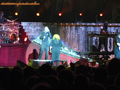 Ouf, dernier concert. Il est 1h du mat', on est là depuis 10h30 sans interruption, je suis mort. Au risque de passer pour un noob, je n’attends pas grand-chose de ce concert ; je suis là car je voudrais voir le phénomène Slipknot, qu’à priori je n’aime pas des masses. C’est surprenant mais j’ai de suite accroché au projet Stone Sour, dans lequel Corey Taylor chante magistralement bien, mais jamais aimé ce qu’il faisait dans Slipknot. Bon, eh bien comme on dit : il n’y a que les imbéciles qui ne changent pas d’avis ; car là, mes aïeux, je suis tombé sur le cul. Oubliée la fatigue intense de la journée, je m’éclate ; et je ne suis pas le seul, vu que la foule se retrouve à danser, sauter sur place, c’est la teuf ! C’est une énorme surprise pour moi, vraiment impressionnant. Corey est un frontman incroyable, le son du groupe est énorme, les percus des deux furieux qui sautent partout ajoutent un réel plus, rendant le son beaucoup plus indus que ce que j’avais entendu sur album. Le pauvre Corey et ses potes dégoulinent sous leurs masques, ça doit être insupportable là-dessous. Je n'en reviens pas de la qualité du son en live, parfait. Corey est un monstre. Il saute dans tous les sens, les « fuck » pleuvent. Comme ils jouent sur la Mainstage 2 et qu’une grosse partie des fans de Judas Priest est partie se coucher, on est super à l’aise pour profiter au max de ce concert. A 02h10, rideau, fin du premier acte en apothéose, c’est la plus grosse claque du vendredi pour moi.