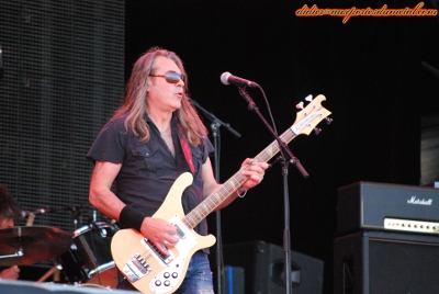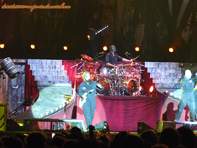 Si j’attendais pas mal de la prestation de Billy Idol, je ne savais pas trop à quoi m’attendre de Lemmy et ses amis. Après tout ce que nous avions entendu sur son état de santé, après les annulations de dates, j’avoue que jusqu’à ce qu’il fasse son apparition sur scène je n’étais sûr de rien. Pourtant il apparaît bien, là devant une foule énorme. Les t-shirts de Motörhead sont légion, le groupe est une légende intergénérationnelle, Lemmy aussi. Même si le Lemmy que nous connaissions ne bougeait pas beaucoup sur scène, le Lemmy que nous avons devant nous fait un peu peine à voir. Il est maigre, sa main gauche tremble sur le manche et il se déplace lentement. On le sent assez faiblard, le pauvre Lemmy. Pourtant musicalement, il est bien là : un mythique « We are Motörhead and we play rock ‘n’ Roll », et c’est parti pour un bon vieux Shoot You In The Back. La voix de Lemmy n’a jamais été son fort, elle est à l’identique, ni moi bien, ni mieux. Il parle entre les morceaux, mais franchement je n’ai pas compris un mot. On aurait dit qu’il bouffait des patates chaudes. Tant pis, ça ne devait pas être essentiel. La setlist me convient bien, et je prends un bon pied, un peu inespéré, à voir Lemmy gueuler dans son micro placé bien haut, en martyrisant sa célèbre Rickenbaker en bois scultée. On dirait quand même que le set a été organisé pour préserver des périodes de repos pour Lemmy. Il disparaît une première fois après Over The Top, pour laisser la place à un solo de guitare de Phil sur un fond de synthé. Même chose un peu plus tard après Doctor Rock pour un solo de batterie de Dee. Je suis ravi qu’ils jouent The Chase Is Better Than The Catch que j’adore. Même chose pour Stay Clean, particulièrement réussi. Je remarque sur une des guitares Explorer de Phil un gros autocollant de No One Is Innocent, bien cool, mais je ne connais pas la petite histoire liée à cet hommage. Ils terminent par un Ace Of Spades un peu bâclé et disparaissent, pour revenir rapidement et nous atomiser d’un bon vieux Overkill de derrière les fagots. Dee nous fait crier pour chaque reprise de sa double pédale. On a tous la banane. A la fin, Dee nous demande d’acclamer Lemmy, ce que nous faisons avec bonheur. Il fête quand même les quarante ans de Motörhead, putain qui l’aurait parié ? Lemmy vient lancer quelques médiators, mais il est faible, et on a même peur qu’il tombe de la haute scène en les lançant. On ne peut s’empêcher d’avoir un petit pincement au cœur en le voyant partir…