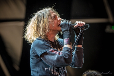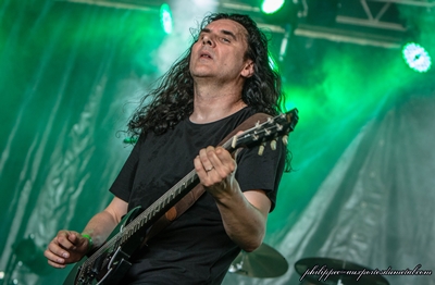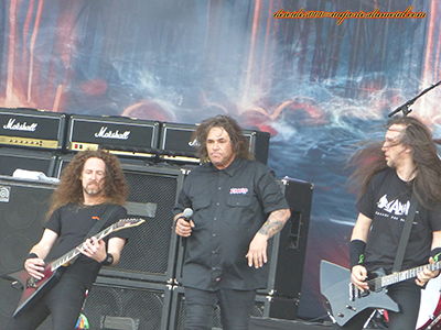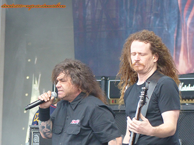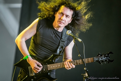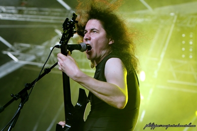 Steve Souza est de retour au sein d’Exodus après avoir succédé à Paul Baloff (décédé) et avoir été remplacé par Rob Dukes (2005-2014). Je me souviens surtout de lui lors d’un concert de Testament à San Francisco en 2008 où il s’était fait sortir de la salle parce que bourré et désagréable. Souvenez vous, Souza a été le chanteur de Testament avant Chuck Billy. Ok, on passe le côté people... Premier constat, Gary Holt est absent car accaparé par Slayer. C’est assez curieux car Gary est une pièce maîtresse d’Exodus et laisser sa place, c’est un peu comme si Chris Adler (batteur de Lamb of God) ne venait pas pour un concert de Lamb of God et se mettait à la place à la disposition de Megadeth (dont il a assuré les drumtracks sur leur dernier album). Reste tout de même l’irremplaçable Tom Hunting, batteur modèle de plein de thrashers, seul membre d’origine du groupe à part Rick. Tom est bien sous-évalué et pourtant c’est lui qui lance de vrais riffs de batterie à l’époque de Fabulous Disaster. Le set se ressent trop court et c’est un peu normal, ce sont de grands malades qui enchaînent leurs chansons qui sont toutes de méchantes cavalcades. Le set fait la part belle au dernier album et la foule en redemande. On a toutefois de la chance car ils ont maintenu de vieilles chansons. Je suis ainsi ravi de les voir jouer The Toxic Waltz, hymne parmi les hymnes. Thrash is not dead.