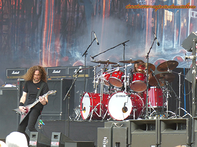 J’avais déjà vu Epica en tête d’affiche, dans une petite salle, et j’avais beaucoup aimé, sauf que là sur la Mainstage 2 devant cette foule immense, je n’ai jamais réussi à rentrer dedans. C’est pourtant pêchu, Simone est toujours aussi jolie, vêtue d’une jolie robe bustier de cuir, tout en beauté et bien en voix. Sa chevelure rousse vole au vent et sa voix lyrique charme les amateurs du genre. Ils ont pas mal d’effets pyrotechnique. Mais quand ça ne veut pas, ça ne veut pas et ça reste une petite déception pour moi.