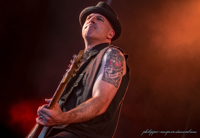Cela fait longtemps que j'espère voir Tom G. Warrior sur scène. Ce n'est plus possible avec Celtic Frost mais ce soir, sous The Temple, il est là avec son groupe Triptykon. L'ambiance voulue est macabre, les lumières sont froides, la scène est en permanence enfumée. Dès l'entame du premier titre, Procreation (Of the Wicked), le public est envoûté mais moi mon moment préféré fut sur un autre titre de Celtic Frost, le culte Circle of the Tyrants. Par contre, avec les compos de Triptykon, j'ai plus de mal, j'aime bien tout de même Altar of Deceit, mais les autres moins, quant à The Prolonging je l'ai trouvée interminable. En fait mon impression est mitigée, je sors de The Temple un peu déçu mais je vous rassure, je suis peut-être le seul. Triptykon fut longtemps acclamé à la fin de son set et le plublic lui fut bien acquis.
