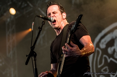 Et voilà, je n'avais encore rien de défini, comme d'habitude dans ce cas-là je me retouve dans The Valley. Là c'est pour y voir Life Of Agony, une formation qui m'est totalement inconnue, enfin vu les milliers de personnes sous The Valley je dois être le seul dans ce cas. Le set commence par River Runs Red qui est aussi le titre d'un album sorti il y a plus de vingt ans et duquel vient la majorité des compos jouées ce soir. La musique de ce combo américain comporte de nombreux riffs inspirés par Black Sabbath, This Time, Bad Seed ou encore Method of Groove en sont de bons exemples, en tout cas j'adore. Derrière les fûts je reconnais Sal Abruscato (ex batteur de Type Of Negative), sa prestation est impeccable ! Un autre membre de Life Of Agony à mettre en avant est son frontman Mina Caputo. Ou sa frontwoman ? Enfin on s'en fout ! Il ou elle communique beaucoup avec ses fans, au point de descendre dans le pit photos et d'en enlasser quelques-uns, puis de chanter avec eux, ce fut un grand moment de communion. De la scène, Mina nous envoie des bouteilles d'eau pour que l'on puisse se rafraîchir, une vraie mère... Mais il n'y a pas que la générosité qui fait cette belle personne, il y aussi sa voix qui colle à merveille à la musique de Life Of Agony, dont l'excellente performance rend vraiment le public heureux et certains attendent ça depuis longtemps (vingt-deux ans pour un)... Ce superbe moment a une fin, Life Of Agony termine sur Underground qui vu l'ovation est sûrement un classique du groupe ! J'ai un immense plaisir à découvrir Life Of Agony, je sors de The Valley complètement fan !