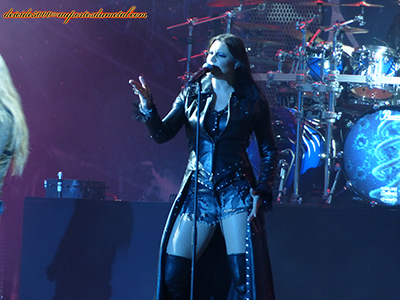 J’avais prévu de terminer mon Hellfest 2015 avec Nightwish car j’avais été plutôt agréablement surpris par leur dernier album, et surtout le dernier DVD. Mais nous sommes tous épuisés et je dois insister un peu auprès du team pour rester. Ils restent solidaires malgré tout et je les remercie. Je vais me caler assez près de la Mainstage 2. Je suis surpris qu’il n’y ait pas plus de monde pour Nightwish. On dirait qu’après Korn, beaucoup de monde a deserté les lieux. Le groupe finlandais envoie la sauce dès le départ en mettant en valeur son dernier opus, ce qui m’arrange. Le son est excellent et la voix de Floor Jansen superbe. Elle, comme Simone d’Epica, un peu plus tôt dans la journée, est tout en beauté, vêtue de noir, on a du mal à la quitter des yeux, notamment lors de ses nombreuses démonstrations de headbanging. J’espère qu’elle a un bon kiné. En tout cas pas d’inquiétude, elle a un bon shampoing et sa longue chevelure virevolte à tout va. Puisqu’on en est à la pilosité, la barbe de Marco Hietala est assez géniale aussi. Outre une bonne basse, il assure le chant grave, jouant le rôle de la bête qui accompagne la belle. Le groupe montre une belle complicité avec Floor qui va régulièrement voir Tuomas Holopainen, un peu coincé sur ses claviers. On a droit à plusieurs interventions de l’homme aux instruments improbables, Troy Donockley, qui clairement participe à l’identité sonore de Nightwish. Ils utilisent un peu les mêmes effets pyrotechniques qu’Epica, avec des jets de flammes bien agencés. Je ne suis pas déçu du set, même si j’aurais aimé quelques titres plus anciens comme Wishmaster, par exemple. Mais le groupe a bien assuré et me permet de clôturer ce dixième Hellfest sur une très bonne impression.