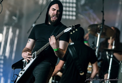 Je suis content de voir enfin Arch Enemy, je les avais ratés en 2010, lors de leur passage sur la Mainstage 2, depuis sa chanteuse Angela Gossow est partie mais bon, ne connaissant pas trop sa discographie, la voix de sa remplaçante, la belle Alissa White-Gluz, me convient très bien. Celle-ci, très avenante, mettra rapidement le public dans sa poche. The Altar est pleine à craquer, la foule déborde sur The Temple et un bon millier de personnes est placé devant l'écran placé à l'entrée de The Altar. Ce soir sur scène nous avons une des plus grandes paires de guitaristes que le metal ait enfanté, aux côtés du gèant Michael Amott, ce n'est autre que Jeff Loomis (Nevermore) qui remplace Nick Cordle fraîchement parti. Jeff est vraiment à l'aise, on a l'impression qu'il a toujours fait partie de Arch Enemy. Les duels entre les deux solistes font l'attraction pour le plus grand plaisir du public. Certes il y a de la mise en scène mais elle n'est pas figée, les musiciens vont de gauche à droite pour communier avec le public, puis le fait qu'Alissa soit canadienne et puisse converser aussi en français réchauffe bien l'atmosphère. Le groupe nous a joué pas mal de morceaux tirés de leur dernier album, War Eternal (War Eternal, Stolen Life, You Will Know My Name, As the Pages Burn, Avalanche) mais ausi pas mal de classiques de leur répertoire comme No Gods, No Masters, Nemesis, Yesterday Is Dead and Gone... En tout, la setlist contiendra treize titres tous excellents. Le public sort de The Altar ravi !