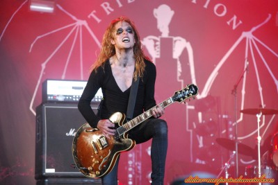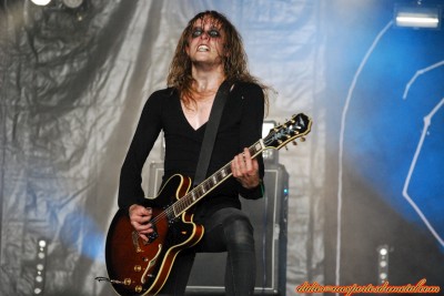 Le réveil fut difficile ce matin, les organismes ont souffert des deux premières journées 100% soleil. Je voulais voir Hypno5e, mais j’arrive sur site trop tard. Du coup je n’ai rien de prévu, c’est l’occasion de tester des choses inconnues, donc direction The Altar pour voir les Suédois de Tribulation, qui d’après le pitch délivre du death metal progressif. Ils officient à deux guitares, un batteur et un chanteur bassiste. Ils ont tous maquillé le tour de leurs yeux en noir, ce qui leur donne un look un peu inquiétant. Le chant est assez modéré et finalement je suis agréablement surpris d’apprécier leur set. Les deux guitaristes se relaient pour nous chatouiller les esgourdes de bons solos, la basse, une Rickenbaker me semble-t-il, est puissante.