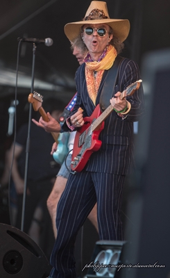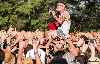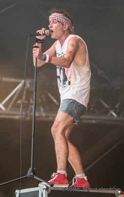 Ma seule visite à The Warzone était prévue pour Les Wampas, principalement parce que j’avais réalisé leur interview un peu plus tôt dans l’après-midi. Je ne suis pas fan du groupe à proprement parler, ni du style. Néanmoins, la réputation de Didier n’est plus à faire, j’avais hâte de tester ça en live. Je confirme : il est fou ! Le groupe envoie un bon gros son mené par les deux guitaristes (le petit nouveau et l’ancien). Et au milieu Didier fait le pitre. Il descend de suite rencontrer son public au premier rang, mais ça c’est trop facile, donc il part carrément dans la foule. Le roadie garde en main le fil de son micro comme s’il le tenait en laisse et lui part faire le fou dans la foule. Il arrivera à marcher debout sur les gens, mais c’est encore trop fastoche donc il prend une chaise et monte debout dessus, le tout porté par la foule. Une fois de retour sur scène, il s’installe en haut d’une kealcase de presque deux mètres et y chante. Son micro tombe, on lui rend. Pendant ce temps les morceaux s’enchaînent. Certains ne durent que quelques secondes, deux, trois riffs pêchus et hop on zappe. Il fait monter une gamine sur scène avant le morceau Ce soir c’est Noël puis s’en va slammer dans la foule. Il disparaît lors du dernier morceau et réapparaît sur le toit d’un stand de nourriture, il casse le décor et arrache un squelette qu’il utilise pour dire au revoir, alors que la foule scande « Didier Wampas t’es le plus fort ». Un rien mégalo, mais on s’est bien marré.