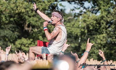 Surprise à nouveau quand j’arrive un peu en retard à cause d’une interview un peu chahuteuse avec les Wampas, car je retrouve tous mes potes en train de se trémousser devant ce groupe totalement inconnu de moi. Ils me disent que c’est génial et j’avoue que ce que j’entends me plaît aussi beaucoup. Pourtant sur le papier, et sous le style rap rock, je dois avouer que les Américains n’avaient pas retenu mon attention. Il faut dire qu'avec leurs trois chanteurs, style rap, un gars qui gère des machines, en plus d’un bassiste, d’un guitariste aux riffs ravageurs et d’un batteur, ils avaient de quoi surprendre. Apparemment ils sont entrés sur scène avec des masques, qu’ils ont rapidement tombés... j’ai raté ça. Tantôt très Linkin Park, tantôt POD ou bien encore Eminem, ou carrément indus, le groupe peut se féliciter d’avoir fait sauter sur place le Hellfest au son de leur rap metal.