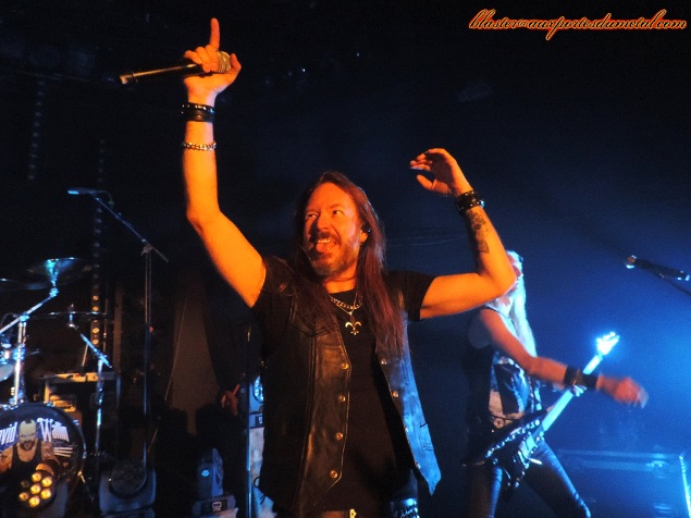 Joacim Cans n'est pas le chanteur du siècle et il m'est déjà arrivé de le trouver un peu faible en concert... mais pas ce soir. Il s'acquitte particulièrement bien de sa tâche et chante juste, même sur les passages les plus hauts. Il a aussi un bon contact avec le public et fait preuve (comme les vocalistes qui ont occupé la scène avant lui ce soir) d'humour. C'est notamment le cas sur Let The Hammer Fall où il s'adresse à l'assistance en précisant que c'est assez facile d'éructer un bon gros "FALL" juste après les mots "Let the hammer..." vu que, quand même, le groupe s'appelle Hammerfall... C'est bien fait quand même, non ?
