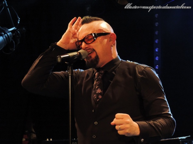 Dès le début du concert, le son est impeccable, le light show irréprochable. Le groupe est en place, carré, pro... Le mix fait la part belle à tous les instruments et ne pousse pas la voix de Tate trop en avant. Le leader a beau être la "star" du groupe, il n'écrase donc pas ses camarades de jeu... Humilité ou nécessité en raison d'une voix qui s'est dégradée et qu'il faut mieux garder à un niveau sonore raisonnable ? La question se pose mais, personnellement, je trouve que le monsieur ne s'en sort pas si mal. Il est même meilleur que dans mes souvenirs... Cependant, inutile de mentir, on le sait, Tate n'a plus la puissance, ni le grain de voix exceptionnel qu'il a eu par le passé. Il va avoir cinquante-sept ans le mois prochain et ses lignes de chant ne sont pas parmi les plus simples à reproduire sur scène (ne serait-ce qu'à cause de leur hauteur). Si l'on prend tout cela en compte, on peut faire preuve d'une certaine indulgence vis-à-vis du vocaliste. Alors soit, il se simplifie la vie, ne tient pas ses notes extrêmement longtemps, laisse le public ou ses collègues chanter certains passages plus ardus... mais il n'est pas mauvais. Et puis, c'est quand même Geoff Tate. Sa voix, bien que diminuée, reste assez unique en son genre... et le chanteur, même si on l'a connu plus impressionnant, conserve une certaine classe (le style vestimentaire "dandy" y est aussi pour quelque chose).