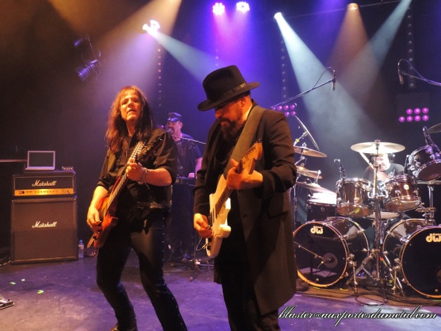 Sans doute parce que l'album joué est une histoire qui ne saurait être interrompue (et sérieuse, qui plus est)... il n'y a pas de pause entre les morceaux, pas de speech... tout s'enchaîne comme sur album et il faudra donc attendre une heure avant que Tate s'adresse à nous. Cela n'aura pas empêché une réelle communion entre l'artiste et ses fans... mais la communication aura été forcément très limitée pendant cette première partie du concert. En tout cas, on aura remarqué à quel point tout le monde était au point (les soli de Scott Moughton et Kelly Gray aux guitares, même s'ils n'ont pas toujours la finesse de ceux des joueurs d'origine - DeGarmo et Wilton - sont maîtrisés) ainsi que la connivence entre les différents membres de l'équipe. En passant, juste un petit mot sur un autre musicien qui m'impressionne ce soir : Simon Wright est impeccable. Quelle frappe ! Puissance, précision... rien à redire sur son jeu, c'est la grande classe !