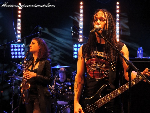 Sur le morceau suivant, quelque chose de très sympa se produit. Tomas et Clodagh (oui, c'est aussi ça l'Irlande, des noms "exotiques") s'exécutent quand, au bout d'une minute, ils sont rejoints par quelques musiciens d'Operation: Mindcrime. On voit tout d'abord le bassiste John Moyer arriver par le coin droit de la scène, puis on remarque que Simon Wright s'est installé derrière la batterie... Discrètement, par la gauche, Randy Gane se faufile derrière un clavier alors que Scott Moughton entre également avec sa guitare pour rejoindre la troupe. Ce petit boeuf improvisé est plus que réjouissant et la salle acclame les musiciens comme il se doit. Moyer en profite pour nous dire que cet "accident" est né lors d'une répétition dans l'après-midi et ajoute avec humour qu'il faut soutenir Fire & Water car ils ne rentreront chez eux que s'ils arrivent à se payer leur billet d'avion ! On sent que les deux Irlandais sont aux anges... La charmante Clodagh en profite d'ailleurs pour demander au public de lui envoyer des vidéos au cas où ce jam providentiel aurait été filmé !