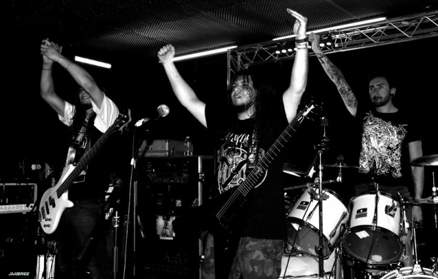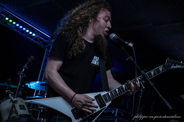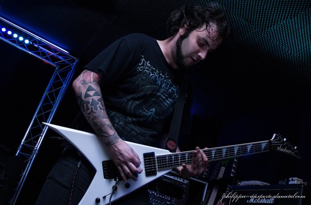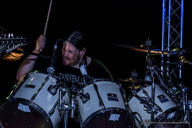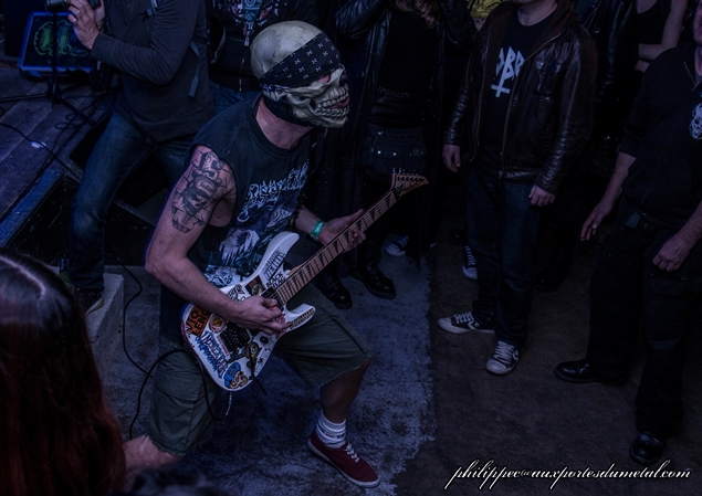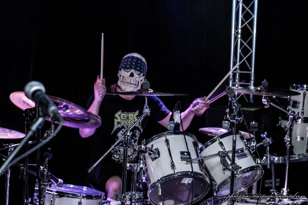 La soirée a commencé très tôt, à 19h00. Arrivé une demi-heure plus tard, j'ai donc raté le groupe français originaire de Lorraine, Deficiency, et auteur de l'excellent The Prodigal Child sorti en 2013. Mon pote photographe Jean Marie Gree présent au moment de leur set m'en a dit beaucoup de bien, il m'a même passé quelques photos pour illustrer leur passage. J'espère pour moi que ce ne sera que partie remise car le groupe revient bientôt dans la région dans le cadre de "l'Hexagone Thrash Alliance", une mini tournée hexagonale qui regroupe donc Deficiency mais aussi Arcania et Heart Attack pendant les deux week-ends fériés de Mai. Tout ce beau monde sera le 1er mai à Toulon (83), le 2 mai à Antibes (06), le 8 mai à St Alvold (57) et le 9 mai à Marmoutier (67). A ne pas rater donc !