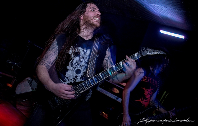 Avec son compatriote David G. Álvarez, le deuxième guitariste, ils s'échangent les soli. Cela part dans tous les sens. Après la danse des testons, c'est un concours de air guitar auquel nous avons droit dans le public. Les solos sur You Are Next, Serpents On Parade ou encore Violent Dawn sont acérés comme des scalpels, de quoi faire des rondelles avec votre cerveau. La rythmique ! Purée, j'allais oublier de vous parler de José J. Izquierdo à la basse couplé à Víctor Valera à la batterie. C'est du BBGV (basse/batterie grande vitesse) quelle technique ! Angelus Apatrida envoie du lourd sur scène, rien à dire et j'aime ! Comme la majorité du public, je me suis fait démonter les cervicales ! Olé !