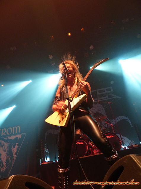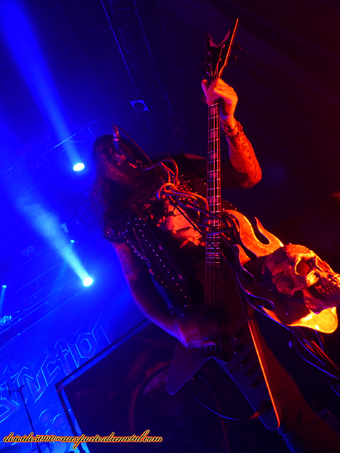 La silhouette imposante de Schmier fait vraiment le job. Je l’ai interviewé, et son 1m90 facile fait le reste. J’ai bien aimé aussi la performance du guitariste Mike Sifringer, sorte de papi chevelu version Fraggle Rock. Le batteur Wawrzyniec "Vaaver" Dramowicz a une patate impressionnante. Je comprends tout à fait le commentaire de Schmier quand il dit qu’il leur faut un batteur énergique, en bonne condition physique. La musique de Destruction est sans compromis, rapide, sans temps mort. Les passages ralentis sont joués à la double, c’est pour dire.