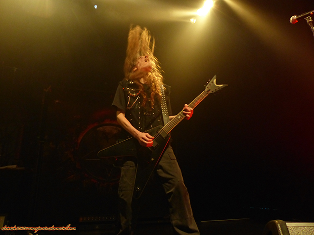 J’attends aussi quelques compos de l’album Doomsday for the Deceiver mais seuls Desecrator et Hammerhead seront jouées ce soir. La prestation ne me convainc pas, mais pas du tout. Tout se ressemble trop. Et d’un, le chanteur me fait chier avec sa gesticulation dès son entrée en scène. Et de deux, c’est énervé mais sonne brouillon. Je suis avec des potes qui aiment le thrash et je n’arrive pas à les convaincre que cela a été un groupe prometteur.