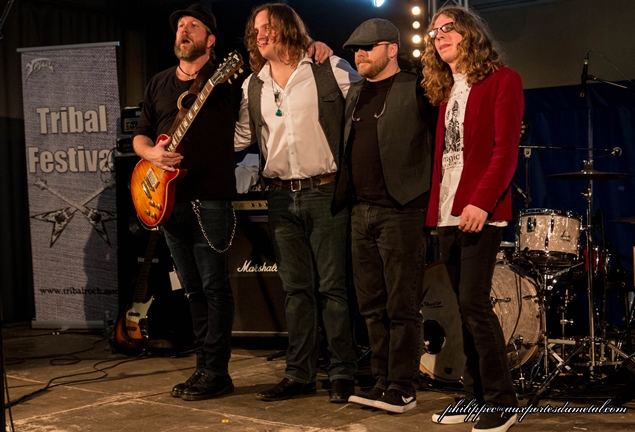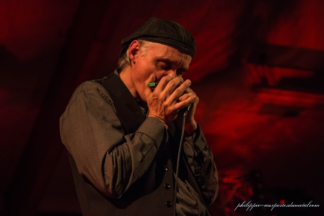 Vers 20 heures, c’est donc le second groupe de la soirée, Lake Shore Blues qui attaque en premier. Nous avions déjà parlé des LSB, lors de la précédente édition en première partie des King King, c’est Phil qui avait couvert la soirée. Ils sont cinq, extrêmement bien en place. On retrouve au chant et à la guitare, Cédric Puléo ; à ses côtés, Jo Harp à l’harmonica et derrière eux, Hervé Letrillard à la batterie, et Jack Blues à la basse et enfin le petit nouveau par rapport à l’année dernière, Bernard Charmoile dit 'Bern" aux claviers.