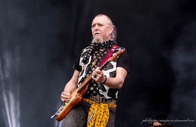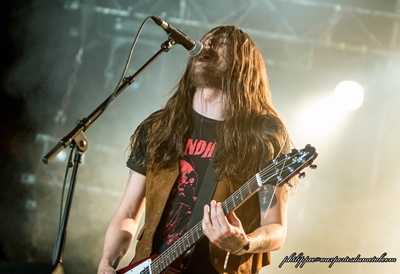 C'est avec le sourire aux lèvres que les Ukrainiens entrent sur scène, on les sent heureux d'être là, en particulier Igor, toujours prêt à la déconne. Stoned Jesus commence avec Electric Mistress, une compo extraite de l’album Seven Thunders Roar (2012). Même si ce titre dure près de dix minutes, il est d'une efficacité imparable. Ses riffs simples et les vibrations de la rythmique nous transpercent de la tête au pied. Stoned Jesus est de suite en communion avec ses milliers d'apôtres. Quelques paroles d'Igor pour nous dire le plaisir qu'ils ont d'être sous the Valley avec nous puis ils enchaînent avec deux extraits de The Harvest (2015), tout d'abord YFS, assez sympa, puis un tonitruant Jesus Christ sorti de la bouche d'Igor annonce le maxi groovy Here Come the Robots ! A ce moment-là, The Valley est bouillante... Les musiciens de Stoned Jesus sont en totale osmose avec le public, ils ne se refusent rien et terminent leur set avec I'm the Mountain, une compo de presque quinze minutes sortie de l'album Seven Thunders Roar. Cette fin est dantesque, The Valley remplie à bloc à ce moment explose ! Nos amis ukrainiens, tout le long du show, ont communiqué de la bonne humeur et de la joie. Musiciens, public, tout le monde quitte The Valley la banane aux lèvres !