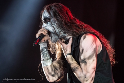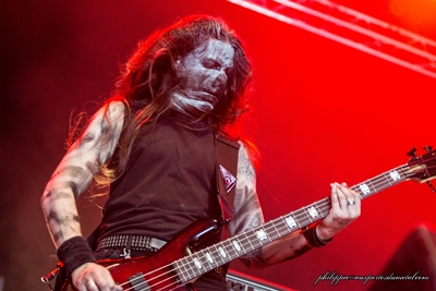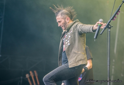 Comme il y a trois ans, je suis très content de retrouver les Mass au Hellfest, encore sur Main Stage 2. Leur dernier passage m'avait totalement convaincu et j'avais même mis leur set dans mon top 3. Entre temps, ils ont sorti un nouvel album, Matière Noire, très puissant (nous avions pu nous en rendre compte lors de la tournée de support qui passait par Marseille). Résultat des courses, la foule est hyper dense devant Main Stage 2. Plus possible de bouger, encore moins de m'approcher faire des photos. Comme il faut faire la queue une heure avant pour arriver dans le pit photo officiel, tant pis, on se passera de photo. Le son des Mass est toujours hyper puissant, ça défonce tout. Mouss, comme souvent, se déchaîne entre les morceaux. Là, je trouve qu'il en fait même trop. Il s'en prend d'abord à l'Euro, "ici, il n'y a pas de bagarre, pas de hooligan", mais je trouve sa tirade sur les flics maladroite et inutile, surtout au lendemain de l'attentat qui a coûté la vie à un policier et sa femme. D'ailleurs, s'il n'y a effectivement pas de hooligan, il y a quand même des esprits échauffés (et avinés) puisque le "jeune" de notre équipe, qui a plongé dans le circle pit, nous a rapporté un début de bagarre, suivi d'une intervention musclée des hommes de la sécurité qui ont sauté les barrières pour aller chercher manu militari le fautif, évacué rapidos sous les huées du reste de la foule. C'est la première fois que j'entends parler de bagarre en six Hellfest. En parlant de circle pit, Mouss décide de mouiller le maillot et de descendre (comme régulièrement) jouer P4 dans le pit avec ses deux guitaristes. Sauf que là, c'est trop le bordel, on ne voit plus rien et on n'entend plus grand-chose non plus. Seuls Rapha qui, je le remarque, porte une coudière et semble subir un peu, et Nico, le bassiste, restent assurer la section rythmique sur scène. Tout le monde remonte sur scène mais, explique Mouss, ils sont obligés de sacrifier un morceau de la setlist pour faire tout ce tintouin. Au final, moi, j'aurais préféré un autre morceau à ce rituel, sympathique mais archi réchauffé. Mouss nous demande de soutenir la scène française et d'aller voir les potes français au Hellfest, comme The Arrs ou Cowards. Il dédicace l'Enfer Des Dieux aux victimes des attentats du Bataclan, de Charlie et d'ailleurs dans le monde. Entre deux morceaux, il décide de s'en prendre aux Américains, qui foutent le bordel partout, surtout là où il y a du pétrole, puis c'est l'heure du wall of death géant. Il essaye de faire remonter le wall jusqu'au bout de la foule, mais ça marche plus ou moins et, sur Furia, c'est l'énorme merdier, Mouss demande même plusieurs fois aux gens d'aider les autres à se relever. Nous récupérerons d'ailleurs notre jeune envoyé spécial dans le pit, dans un piteux état, couvert de terre. Mouss descend au contact du premier rang, il s'égosille, "on met le feu dans le cerveau", et se jette en slam dans la foule tout en continuant à chanter. Le plus gros circle pit se forme devant Main Stage 2. Une fois de plus, Mass Hysteria enflamme le Hellfest même si j'ai trouvé le Mouss un peu lourd avec ses discours.