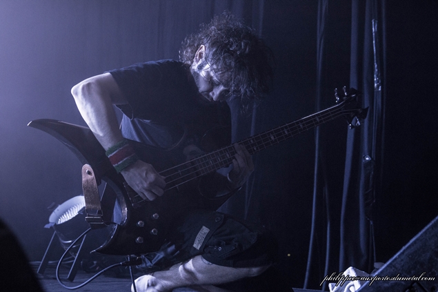 Après l'intro et le long morceau extrait du dernier album, ils attaquent une série de morceaux du second album, Acid Mist Tomorrow, toujours entrecoupés de fonds sonores, extraits de films ou de livres. C'est toujours une alternance de moments très calmes et planants avec des moments ultra violents, j'aime beaucoup ces contrastes extrêmes, et la salle semble apprécier aussi : les gens dansent sur place et pogotent sur les moments violents. Ils jouent aussi un morceau de leur premier album et terminent par West Shore - Where We Lost The Ones, avant de quitter brièvement la scène. Ils reviennent assez vite et attaquent un autre extrait du dernier album West Shore - Memories. Gredin a troqué sa BC Rich pour une Schecter cinq cordes.
