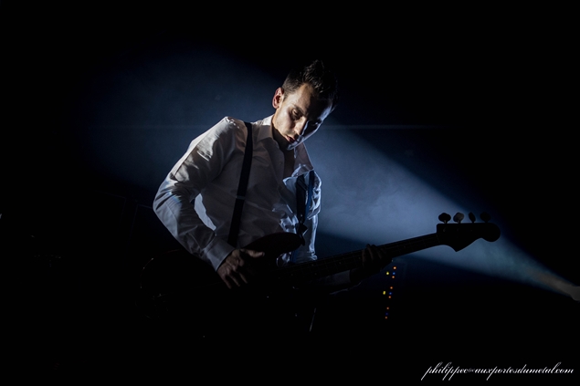 Vers 21h, les lumières s’éteignent. Les musiciens de Digital Nova font leur apparition. On peut dire qu’il ont soigné leur look. Les trois garçons sont en chemise, cravate et bretelles. Le chanteur (François Le Goazigo) en noir, les guitaristes (Mathieu Dubois, quatre cordes et Jean Baptiste Caysac, six cordes) en blanc. Et c’est un fille (Stayff Silmar) qui bat la mesure. Je ne connais pas le groupe, mais je suis agréablement surpris, c’est bien fait et leur style musical se situe entre Mass Hysteria et Rage Against The Machine. En plus, ils ont des passages plus atmosphériques que je trouve bien gaulés.