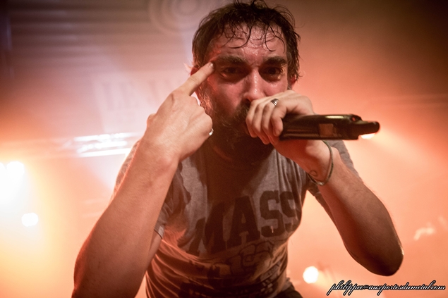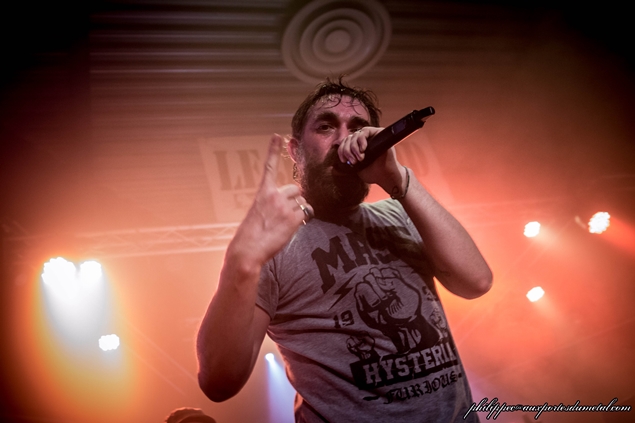 François essaye de chauffer la salle un peu plus. Ca marche pas mal et ça commence même à pogoter vers la fin, quand il évoque la venue de Mass Hysteria et leur joie de jouer avant eux. Il se paye même un petit slam bien mérité. Ils s’arrêtent vers 21h45 et leur matos est évacué.