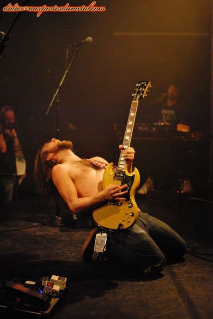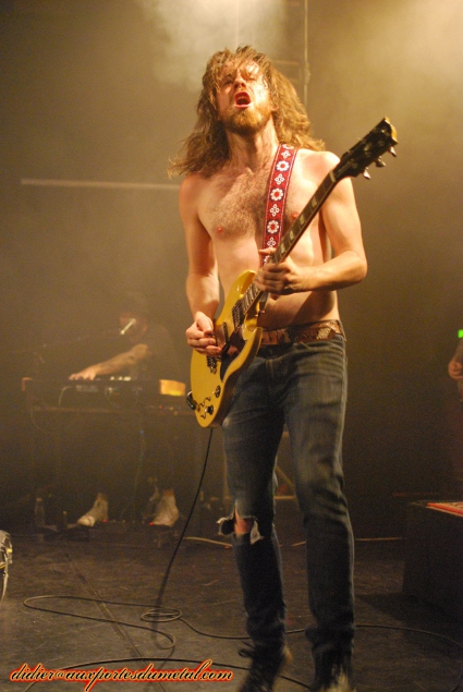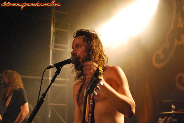 Ils alternent morceau de Second Sun et morceaux de leur premier album (six de chaque) que je ne connais pas. Ce que j’en entends me plaît beaucoup, et quand ils terminent, je les retrouve au stand merchandising, mais Andrew m’explique que le premier album n’est plus disponible et qu’il vont sûrement le represser. Dommage. En tout cas il est vraiment très sympa, me remercie d’être venu et d’avoir chroniqué leur dernier album. Sur scène, il bouge pas mal, même si dans ce style musical, le spectacle n’est pas fou. Les musiciens sont concentrés sur leur instruments et donnent le meilleur. Ca me fait penser à un concert de The Answer, on est là entre amateurs de musique, pas pour voir du gros spectacle. Moi ça me va, et visiblement mes voisins aussi. La seule phrase que Andrew connaisse en français c’est « merci beau-cuuu » et le pauvre il en abuse. Ils ont dû réviser avec Jon Harvey, le chanteur de Monster Truck car c’est aussi sa seule phrase.