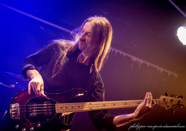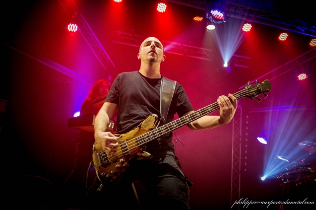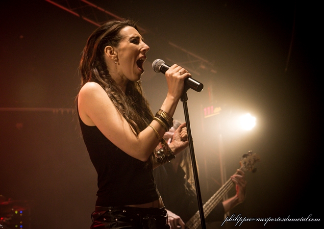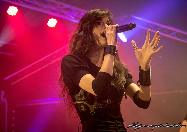 Je suis rassuré, le son est très bon, on entend bien les trois vocalistes, chaque instrument est bien audible, cela change de leur ordinaire (voir les deux report faits sur les dates de Bordeaux et Paris) ! A ce premier titre s'enchainent Titania, No Need to Fear, Trust and Betrayal, tous les quatre sont extraits de l'excellent The Great Lie sorti en 2015. Sur cette première moitié de set, je suis agréablement surpris par la perfomance de Guillaume Bideau que j'entendais pour la première fois en chant clair. Son duo avec l'excellent Black Messiah sur Trust And Betrayal est magistrlal. Surpris aussi par Clémentine qui occupe bien l'espace en passant d'un musicien à l'autre et au niveau vocal elle est toujours juste et bien en place. Son expérience avec Serenity lui a donné beaucoup d'assurance. Elle fut magnifique sur Titania et No Need to Fear, puis sur Hopeless Crime.