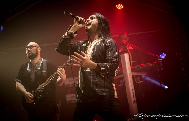 Le temps du changement de plateau est assez court, vers 22h30 la lumière s'éteint. L'intro de Sour Sigh retentit, Myrath entre sur scène. Ce titre est une bonne entrée en matière, il ravit de suite la centaine de personnes venues voir ce soir les Franco-Tunisiens qui enchaînent avec Storm Of Lies, une pure merveille extraite de Legacy, leur nouvel album. La voix de Zaher y est magique et, sur les nouveaux titres, il assume complétement ses origines et a acquis sa propre identité vocale à la fois chaude et rock. C'est la quatrième fois qu'ils se produisent dans la région marseillaise et la troisième dans cette salle, Zaher nous le rappelle juste avant de présenter Get Your Freedom Back, un autre titre de Legacy tout aussi bon que le précédent. Il n'y a pas que vocalement qu'il a mûri, scéniquement aussi : il occupe bien l'espace, joue avec le public très naturellement sans mise en scène.