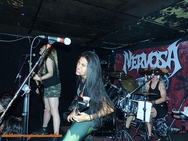 Les filles tournent actuellement en Europe avant d’aller au Canada et aux US, avant de revenir en Europe cet automne avec Destruction et Flotsam & Jetsam. Le thrash rageur fait mouche au Void. Quelle énergie, quand on voit la tournée dans laquelle elles sont embarquées. Nervosa est taillé pour la scène. Les trois filles font très vite oublier qu’elles sont jolies ou mignonnes, vues les grimaces de la mort et l’agressivité déployée.