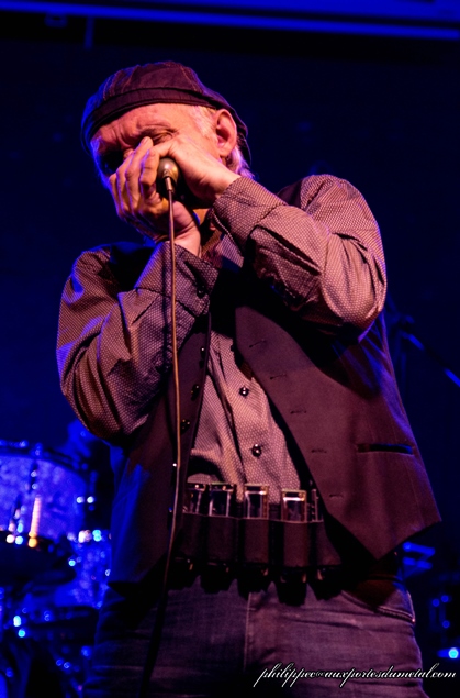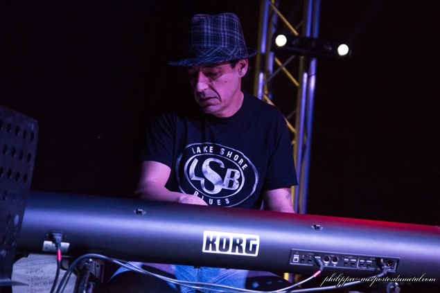 Ok mais ça c’était vers minuit. Nous arrivons avec Phil-photo-man et un pote vers 20h30, alors que le groupe de première partie, Lake Shore Blues, vient de commencer. Qu’ils m’excusent d’avoir raté le début. Les LSB, vous connaissez puisque je vous en avais parlé, il y a seulement quinze jours, car ils ouvraient pour le concert de Devon Allman. Les revoilà donc, nos Chicago bluesmen du cru. Par rapport au concert de Peymeinade, peu de changement, le bassiste et le clavier ont échangé leurs positions. Devant eux, Cédric (guitare/chant) et Joe (harmonica) qui continuent d’assurer une super prestation. Je les trouve encore meilleurs qu’il y a deux semaines, le son est bon ; le bassiste, qui roupillait presque en jouant (certes bien) la dernière fois, est très en forme cette fois-ci, presque déchainé, il danse d’un pied sur l’autre (je rigole…).