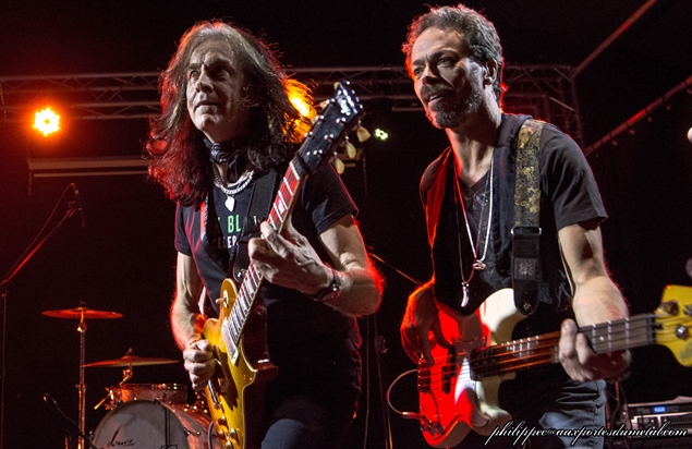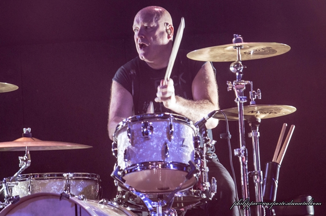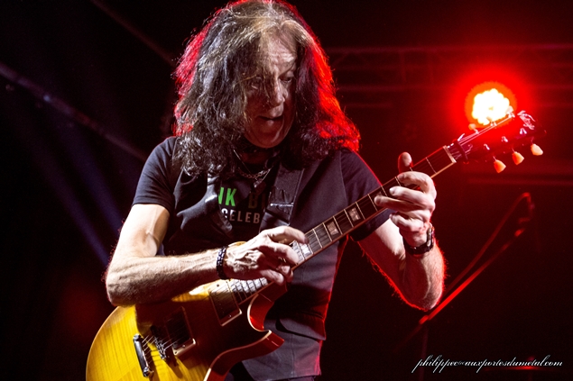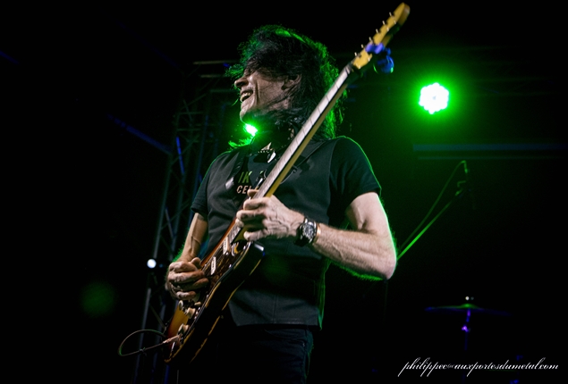 Ils terminent avec le morceau hommage à Gary Moore écrit par Pat, Belfast Boy, sublime, et un Needle In The Groove déchainé. Même pas trois minutes après avoir quitté la scène, les voilà de retour sous les acclamations de la foule. Et là, nous voilà partis pour un triple hommage avec un enchainement de Walking By Myself de Gary Moore, puis un La Grange de ZZ TOP, énorme et classique, et enfin un morceau de Rory Galagher, Don’t Mess With The Kids. Quel final ! J’avais un doute sur ce dernier titre, et il n’apparaissait pas sur la setlist (Pat donne toujours plus que prévu), mais pas de problème avec Pat MacManus, il suffit de se frayer un chemin vers le stand merchandising, pris d’assaut et de le lui demander. Il est tellement content de discuter, il me répond tout en me serrant la main pendant une bonne minute, et en me remerciant d’être venu. Il me signe aussi un DVD Live In Ireland vendu 10€ (comme tous les CD d’ailleurs).