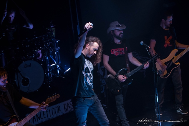 L’efficacité du combo est maximum, que cela soit sur les titres les plus dance et électro (Back To Basics, I Feel Fine, Dancefloor Bastards, Comme On Vibre) que ceux les plus metal (Spread It, Frapper la Terre). Dans ce dernier style, ça rappelle souvent Mass Hysteria et les fans de Mass devraient, s’ils ne connaissent pas, se pencher sur Sidilarsen, ça a bien collé dans mon cas. Comme avec Mass, les textes sont souvent très engagés, soulevant de vrais problèmes de nos sociétés modernes. Par contre, Didou reste plus léger que Mouss entre les morceaux, pas le temps pour les longs serments, ils ont de la purée à balancer. En parlant de purée, les morceaux les plus "dance" sont vraiment excellents pour lancer une ambiance de fou dans la salle du Rat’s. Ca danse, ca pogotte, ça crie. Quelle ambiance !