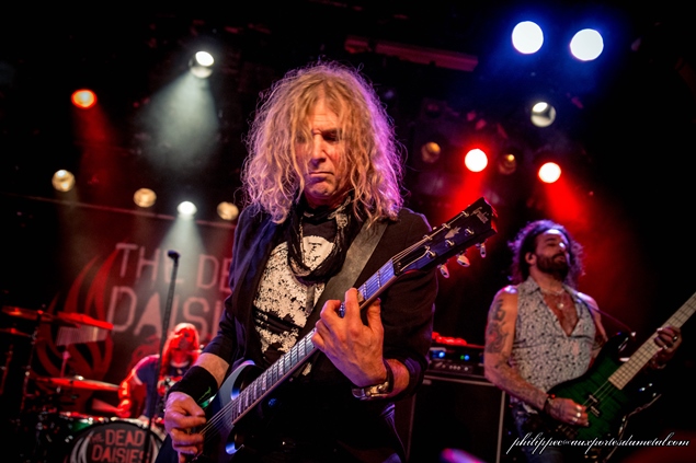 Le concert était annoncé comme un co-headlining des deux groupes, du coup The Answer a joué une bonne heure et quart. La scène est assez vite préparée, les amplis des deux groupes était déjà sur scène, il suffit d’éteindre les premiers et d’allumer les autres. Quand les américains de The Dead Daisies montent sur scène on voit de suite le changement de style. Exit la simplicité et le naturel de Cormac et ses acolytes, et bonjour la grosse artillerie : tatouages, cheveux bien arrangés, maquillages et poses avantageuses, on est bien là en présence d’un vrai groupe de hair metal, tout droit sorti des années 80. Il faut dire que les CV des musiciens en présence sont longs comme des jours sans pain.