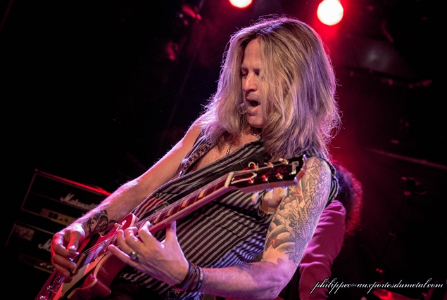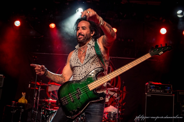 Enfin au chant, avec des petits airs de Steven Tyler, c’est aujourd’hui John Corabi, qui a remplacé Jon Stevens. John est connu pour avoir entre autres remplacé Vince Neil dans Mötley Crüe, ou encore pour avoir été guitariste au sein de Ratt. Le son de The Dead Daisies est bien plus fort que pour The Answer, c’est dommage, mais tout est toujours "plus" avec nos amis américains. Ils sont tout sourires, et attaquent fort avec Long Way To Go, un extrait de leur troisième et dernier album. La voix de John est bien en place, mais il a des soucis avec les in-ear monitors, ses écouteurs cachés sous son épaisse tignasse qui lui donnent les retours. Il passera la soirée à essayer de résoudre le problème, en vain. Je disais qu’avec sa chevelure et ses mèches blanches à la Cruella, il avait des airs de Steven Tyler, mais ses acolytes en joue aussi, car ils attaquent l’intro de Sweet Emotion, en se foutant de lui.