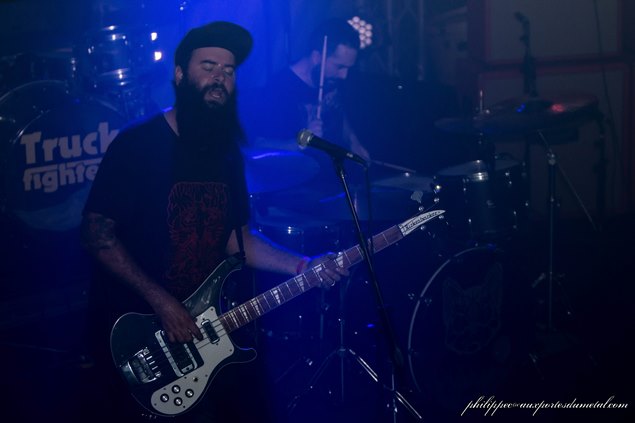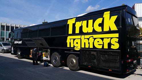 Une belle soirée stoner en perspective au Rat’s ce vendredi soir. En effet, Eric, le boss, accueille les Suédois de TruckFighters, qui sillonnent les routes d’Europe avec leur magnifique tourbus. Et comme il faut savoir s’entourer, ils voyagent sur cette tournée avec leurs support bands, à savoir les Autrichiens de Witchrider et les Canadiens de We Hunt Buffalo. Sacré programme de classe internationale qu’il ne fallait pas rater. Nous faisons donc le déplacement avec Phil aux objectifs et moi-même au report (la tête et les yeux :-)). J’en profite pour faire découvrir le Rat’s à un de mes amis-du-Hellfest et il a été emballé par l’ambiance et la musique. Dans la salle, on commence à reconnaitre les habitués, il faut dire que le mois d’octobre a été chargé côté programmation au Rat’s. Environ 120 personnes ont fait le déplacement, les cheeseburgers du foodtruck semblent faire l’unanimité.