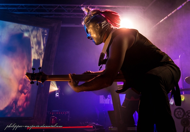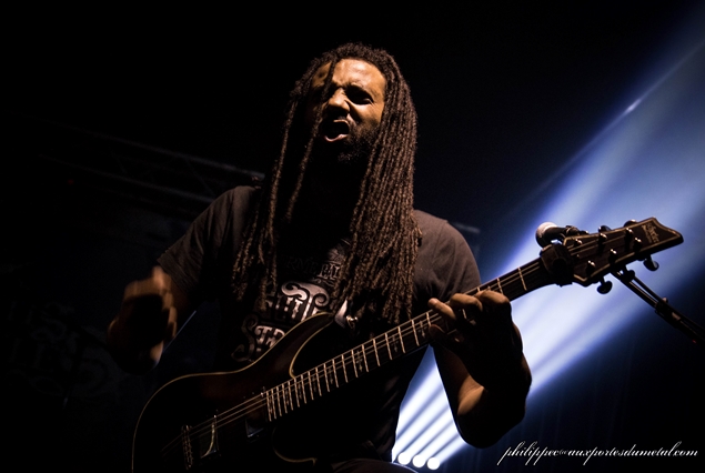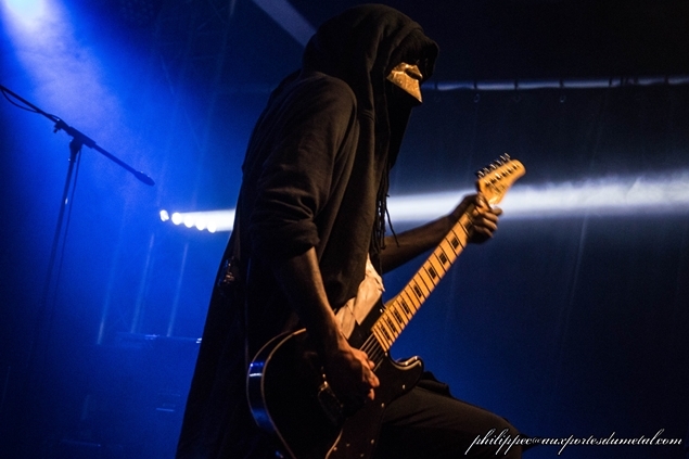Clairement le groupe opère dans un style qui est assez loin de mes goûts de référence : le death technique. Et dans death technique, il y a death, dont le chant n’est franchement pas à mon goût. Et il y a technique, qui, ça, aurait plutôt tendance à me plaire. Le groupe de Paris est explosif avec un chanteur qui saute de partout et s’égosille dans son micro. Ses deux guitaristes (Alex Houngbo et Julien Rosenthal) sont particulièrement impressionnants de technicité, notamment Alex particulièrement souriant pendant tout le set. Il assure aussi des growls en support du chanteur. A la section rythmique, on trouve Simon Chartier et Sydney Taieb, respectivement basse et batterie.