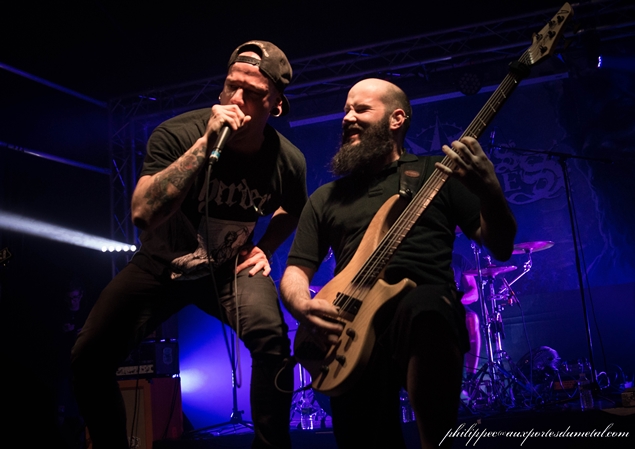 A noter que ça n’était pas Antoine Bibent (le chanteur habituel du combo) au micro, mais Tristan Haillot (Weaksaw) qui le remplace sur la tournée actuelle (problème d’agenda pour Antoine). Même si je ne suis pas fan de chant death, je trouve un peu dommage qu’il n’ait pas été plus poussé dans le mix. On pouvait le voir gueuler dans son micro, mais on l’entendait peu, même en se déplaçant dans la salle. Côté instrumental, je suis épaté par les musiciens sur scène, qui sont bien en place. Julien et Alex alternent les solos de guitares, et nous font un déballage de ce qu’il est possible de faire avec une guitare. Gros son, pas trop dans ma came, mais gros son quand même.